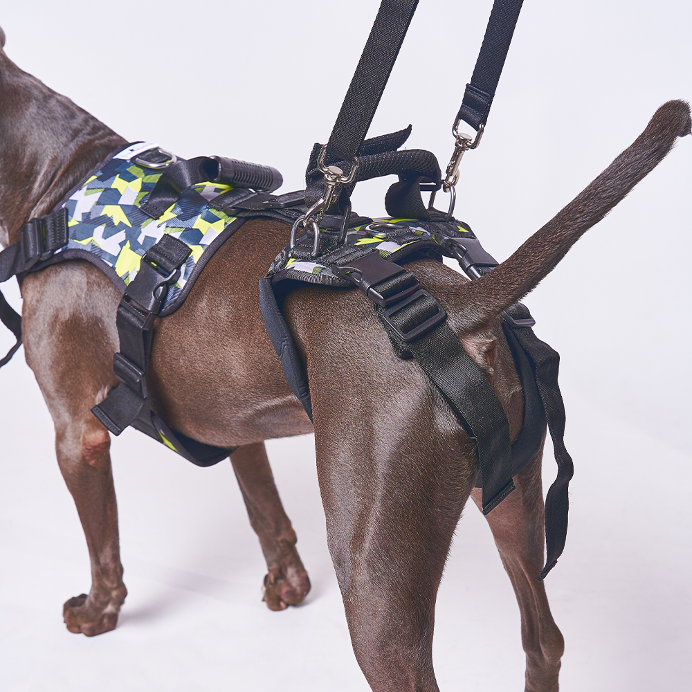 Ofrece puntos de sujeción seguros y cómodos para ayudar a la mascota a levantar, hacer sus necesidades, subir y bajar escaleras, liberando carga en sus articulaciones.